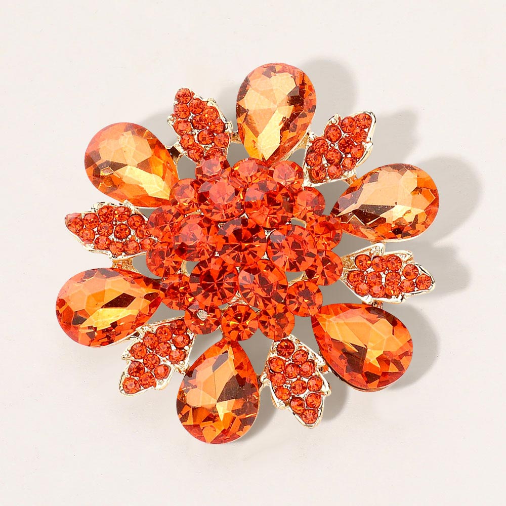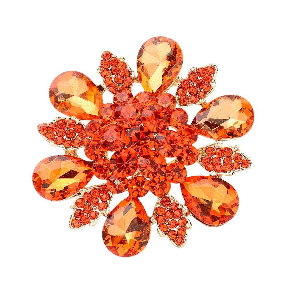 Details • Size : 2.5" x 2.5" • Pin Brooch • This elegant crystal flower brooch adds a radiant touch to any outfit with its beautifully arranged sparkling stones and refined floral silhouette. Perfect for elevating everyday looks or enhancing formal attire, it offers timeless charm and eye-catching brilliance. • Lead and Nickel Compliant