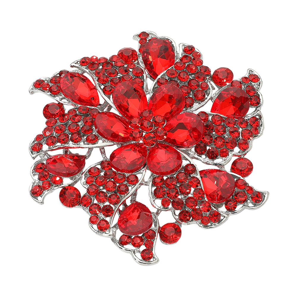Details • Size : 4" X 4" • Pin Brooch • Elegant floral brooch featuring dazzling gemstone accents arranged in a radiant petal design. Perfect for adding a touch of glamour to jackets, dresses, or scarves, this statement accessory enhances any outfit with a refined and eye-catching sparkle. • Lead and Nickel Compliant