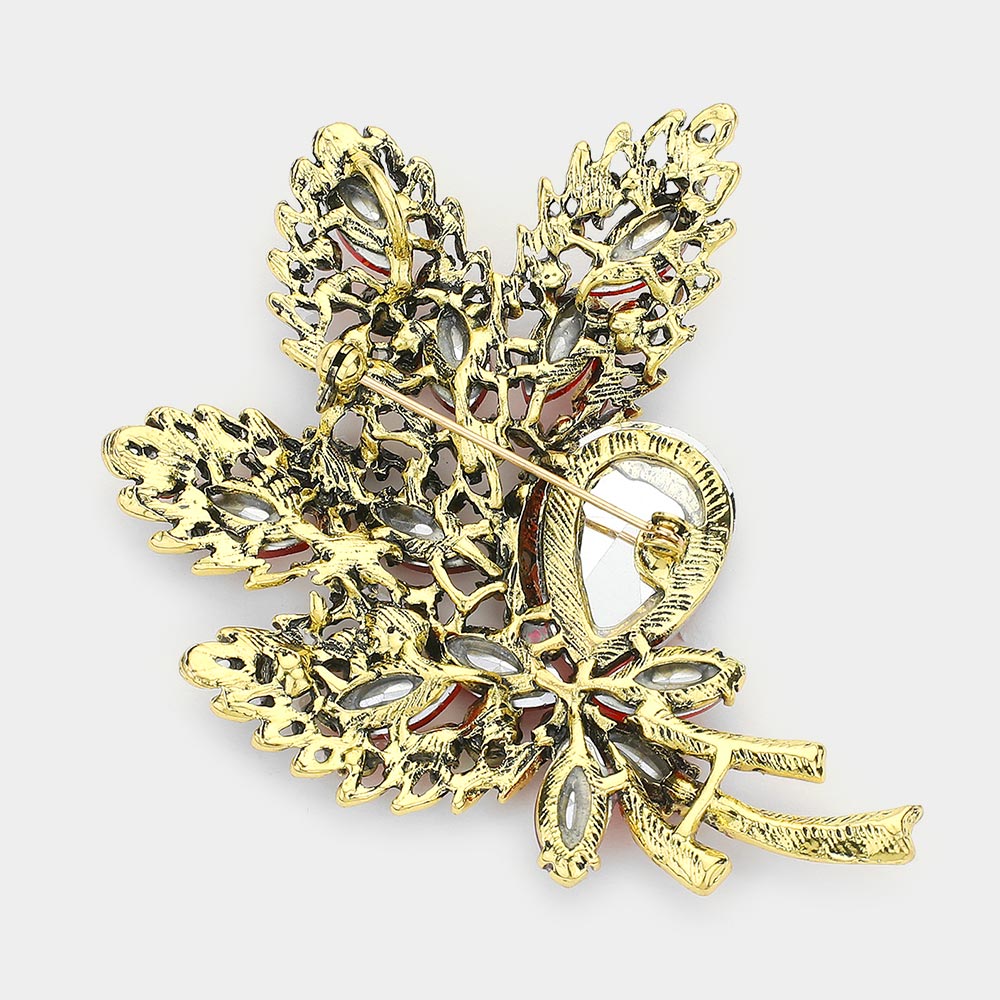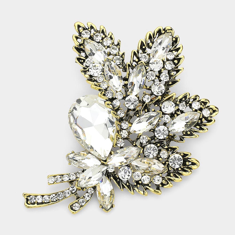 Glass Crystal Leaf Bouquet Brooch / Pendant