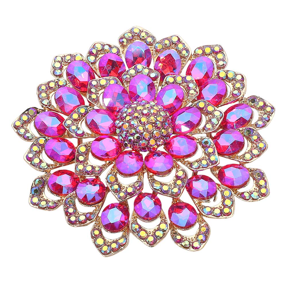 • Stunning floral brooch designed with layered petals and iridescent crystal gemstones. Perfect as a statement accessory for dresses, scarves, shawls, or special occasions, adding sparkle and elegance to any outfit.