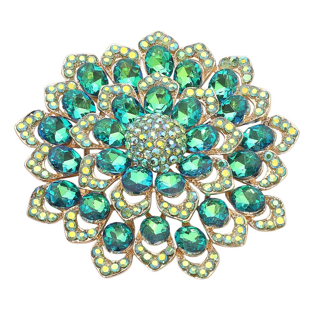 • Stunning floral brooch designed with layered petals and iridescent crystal gemstones. Perfect as a statement accessory for dresses, scarves, shawls, or special occasions, adding sparkle and elegance to any outfit.