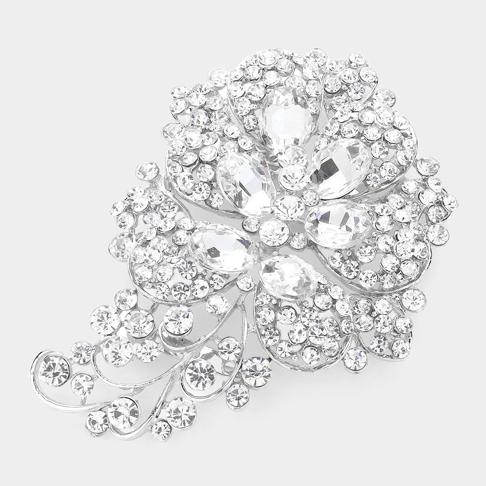 Flower CZ Stone Cluster Teardrop Dangle Evening Earrings