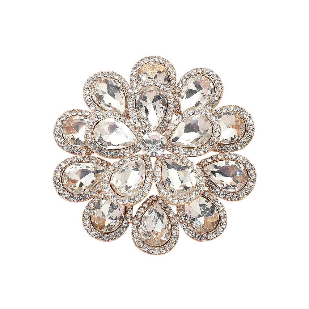 • Eye-catching floral brooch designed with layered teardrop-shaped crystal accents forming a radiant flower silhouette. A bold statement piece ideal for jackets, dresses, scarves, and special occasion styling, perfect for gifting or elegant everyday looks.