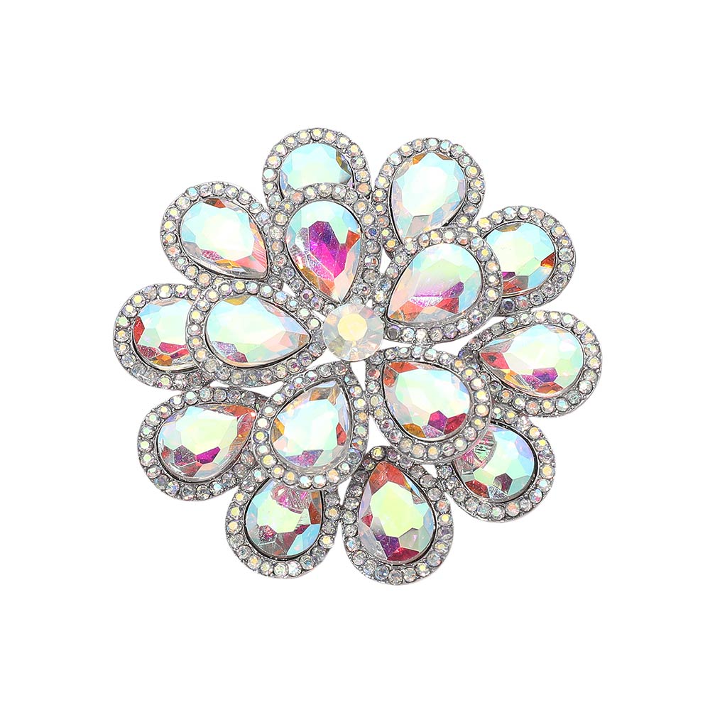 • Eye-catching floral brooch designed with layered teardrop-shaped crystal accents forming a radiant flower silhouette. A bold statement piece ideal for jackets, dresses, scarves, and special occasion styling, perfect for gifting or elegant everyday looks.