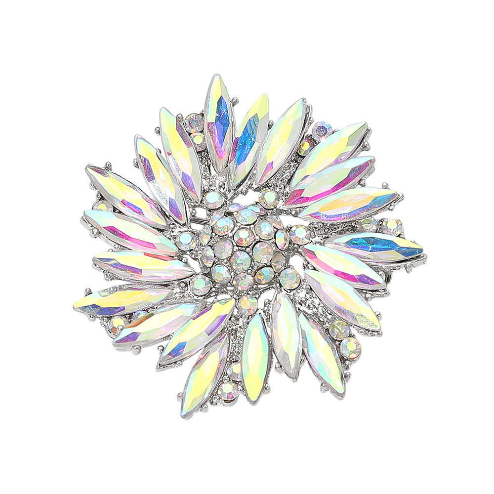 Details • Size : 2" X 2" • Pin Brooch • A bold sparkling floral design that adds instant glamour to jackets, dresses, scarves, and special-occasion outfits. Ideal for gifting or elevating everyday looks with an eye-catching accent that delivers standout style and elegance. • Lead and Nickel Compliant