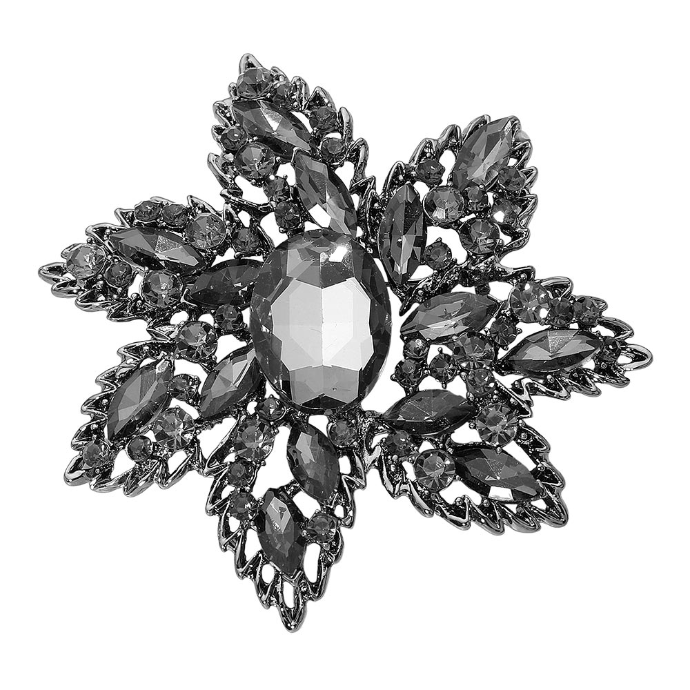 Details • Size : 3.6" X 3.6" • Pin Brooch • This ornate floral brooch features an intricately layered design with a bold faceted centerpiece surrounded by shimmering accents. Its radiant, sculpted silhouette adds a refined touch to formalwear, evening outfits, or special-occasion ensembles, creating a timeless statement full of sophistication. • Lead and Nickel Compliant