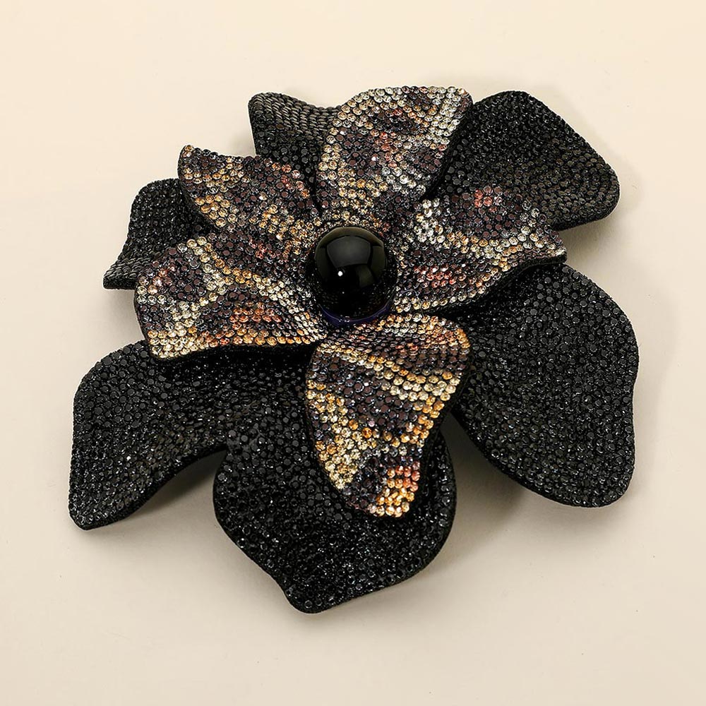 Pearl Accent Bling Studded Leopard Pattern Flower Pin Brooch Alligator Snap Hair Clip
