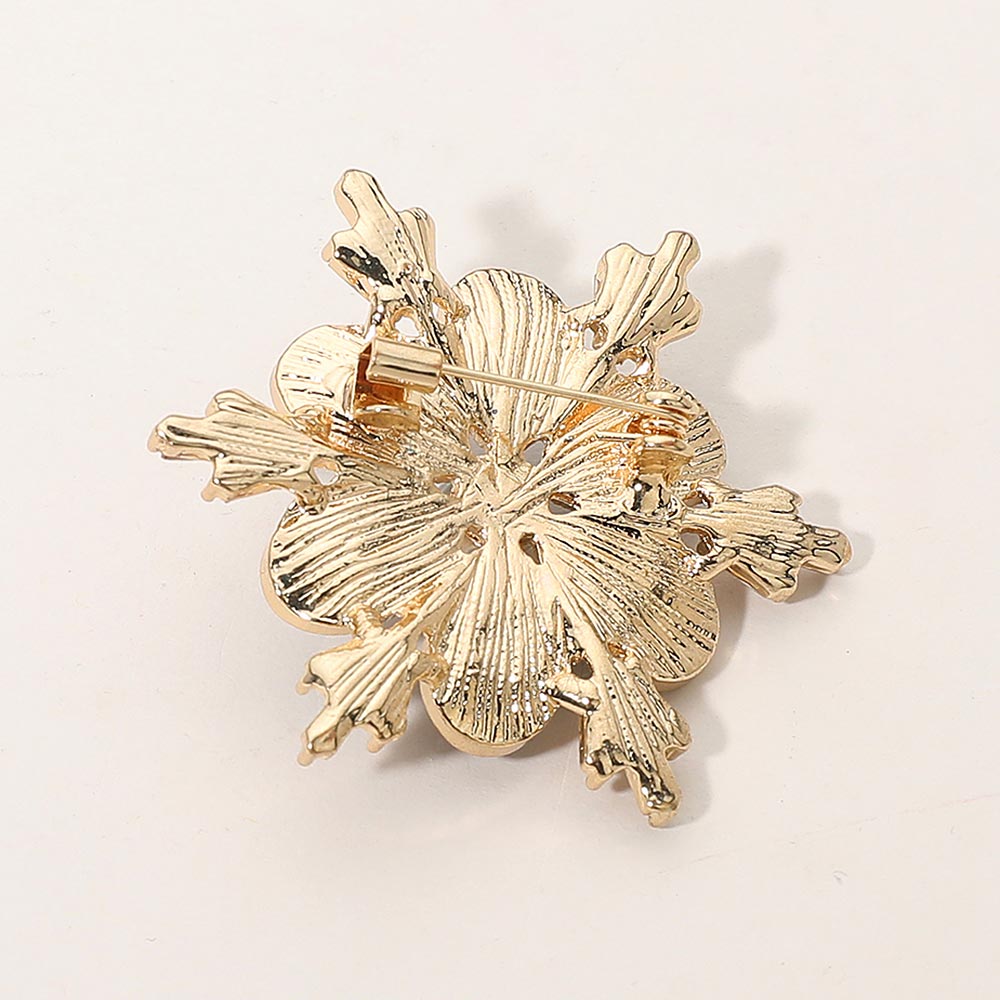 Details • Size : 1.75" X 1.5" • Pin Brooch • Enhance your style with this elegant floral brooch featuring sparkling crystal petals and a radiant pearl center. A gold-tone finish adds refined charm, making it the perfect accessory to elevate jackets, dresses, scarves, and bags for weddings, parties, or everyday sophistication. • Lead and Nickel Compliant