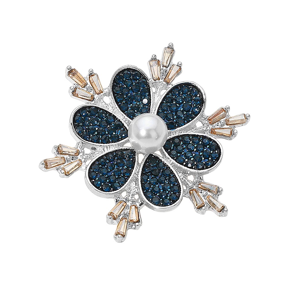 Pearl Center Stone Paved Petal Flower Pin Brooch Pearl Center Stone Paved Petal Flower Pin Brooch Pearl Center Stone Paved Petal Flower Pin Brooch