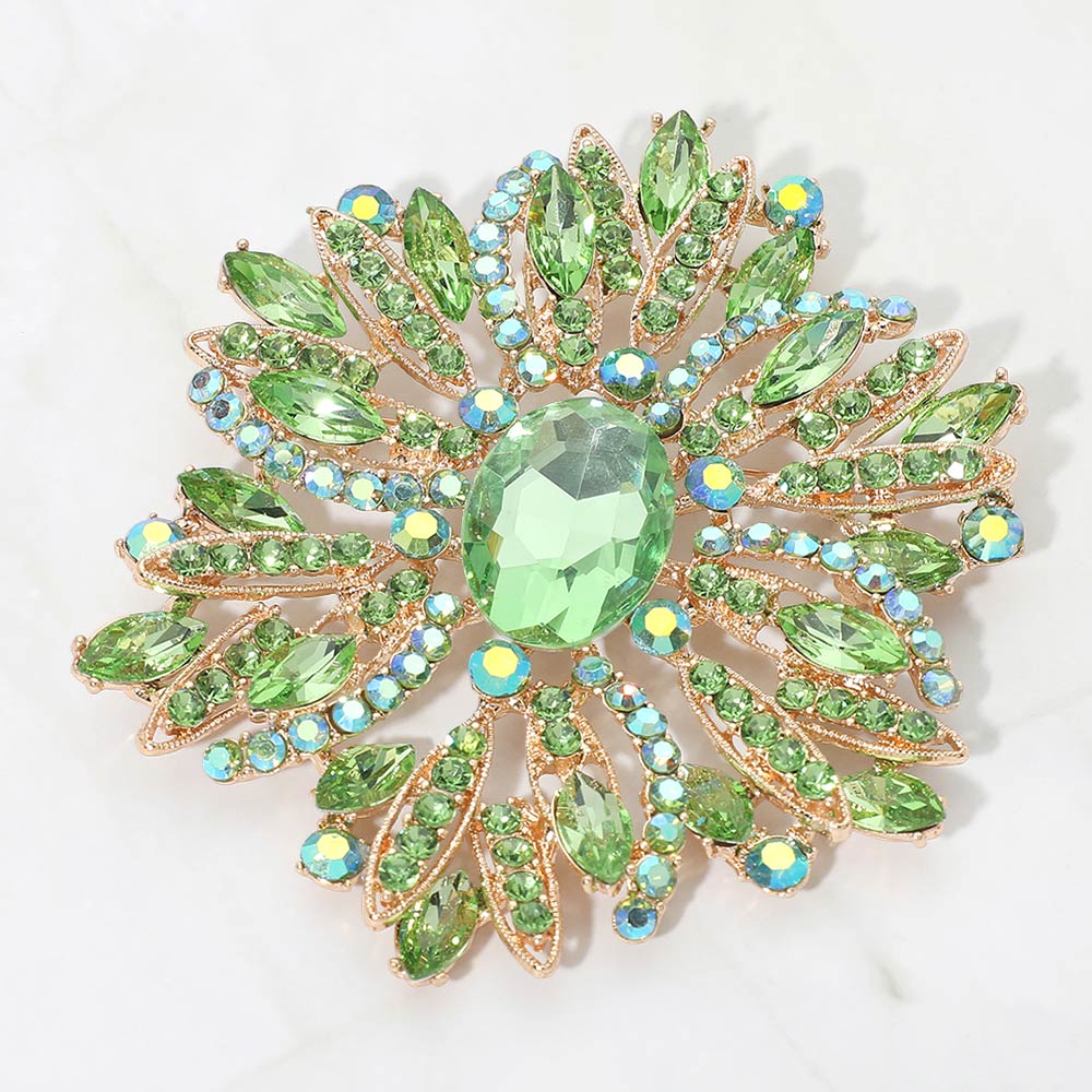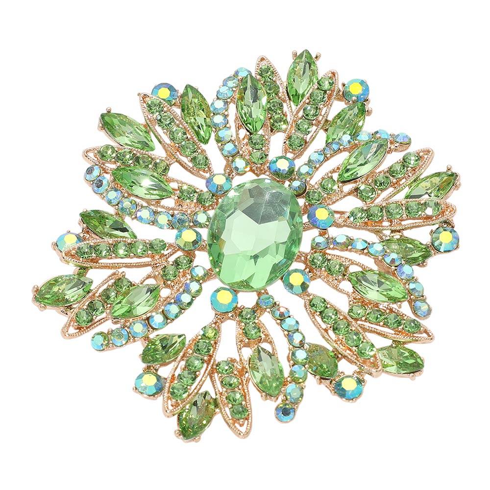 • Elegant statement brooch featuring a radiant center accent surrounded by intricate marquise and round detailing for a refined, eye-catching look. Designed to elevate jackets, dresses, scarves, and formal styling. Ideal for boutiques, special occasions, bridal-inspired collections, gifting, and customers seeking timeless accessories with strong visual impact and versatile styling appeal.