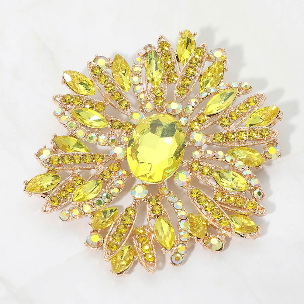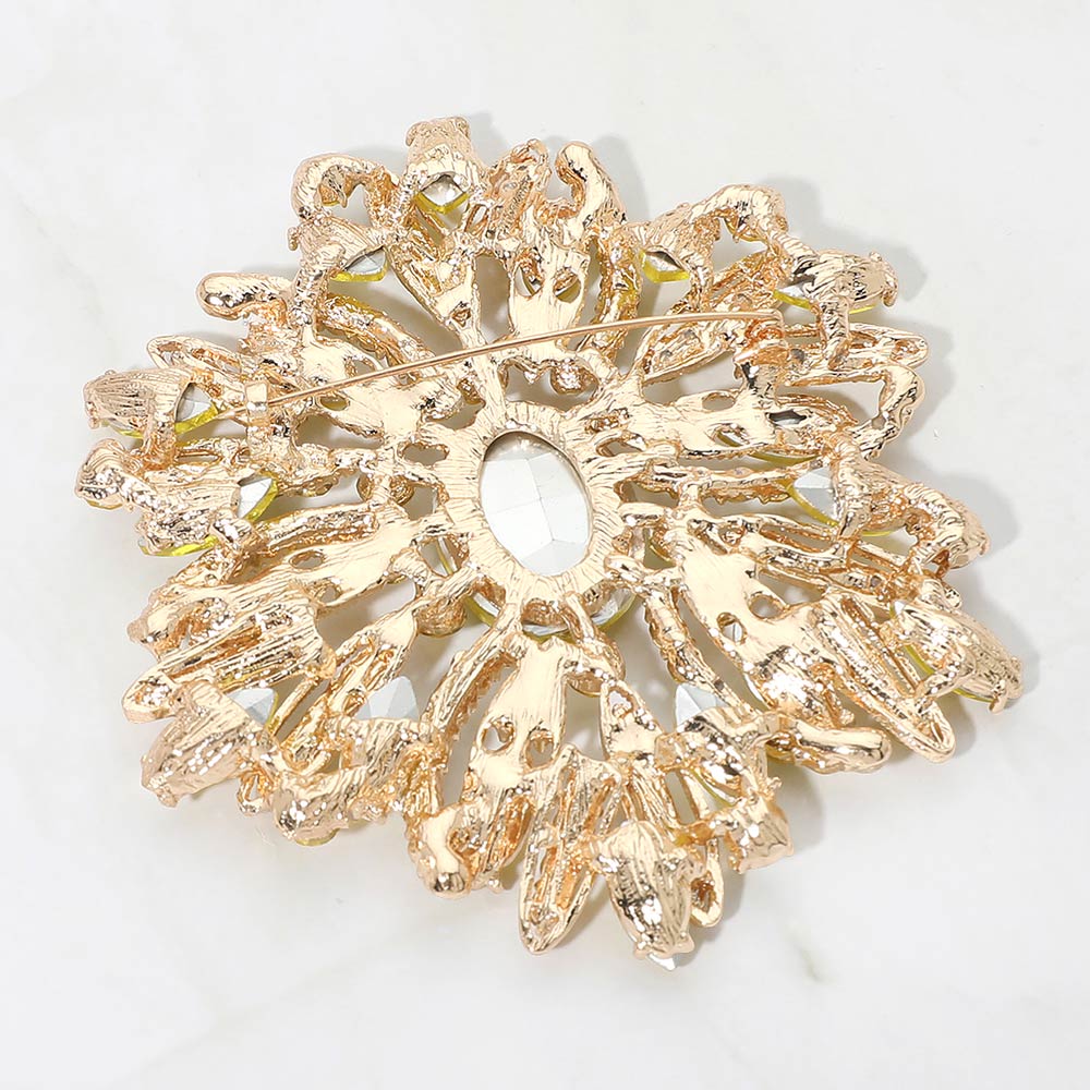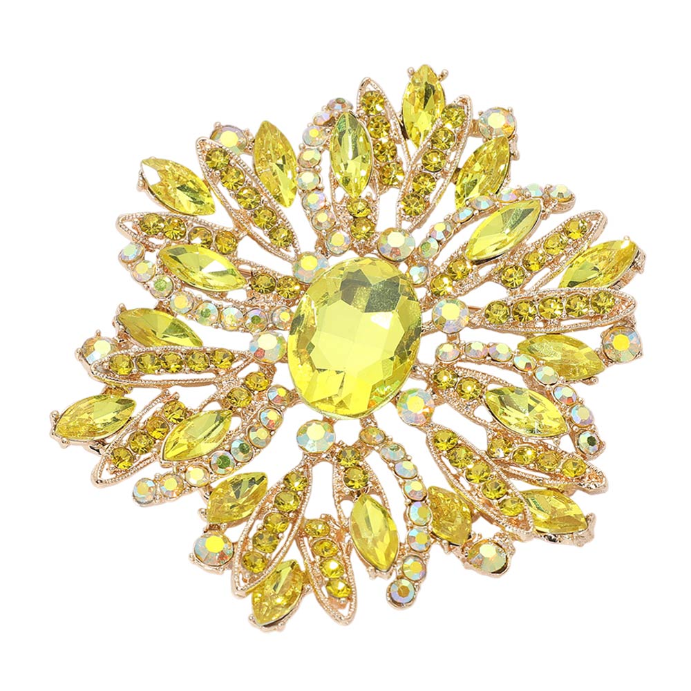 • Elegant statement brooch featuring a radiant center accent surrounded by intricate marquise and round detailing for a refined, eye-catching look. Designed to elevate jackets, dresses, scarves, and formal styling. Ideal for boutiques, special occasions, bridal-inspired collections, gifting, and customers seeking timeless accessories with strong visual impact and versatile styling appeal.