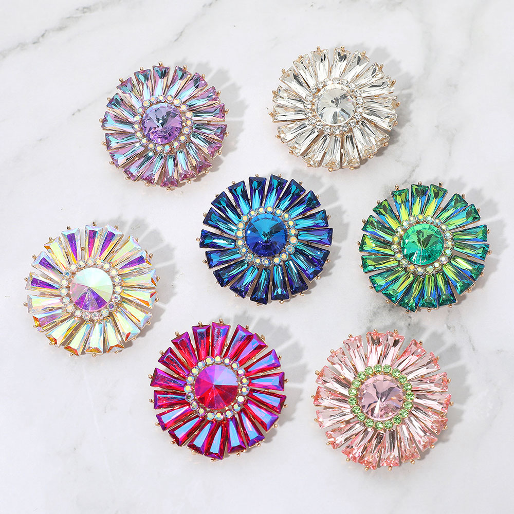 Details • Size : 1.75" X 1.75 • Pin Brooch • Make a statement with this radiant burst brooch featuring a dazzling faceted gemstone centerpiece surrounded by precision-cut accents. Its bold, symmetrical design adds instant glamour, perfect for elevating evening wear, formal attire, or stylish outerwear. • Lead and Nickel Compliant