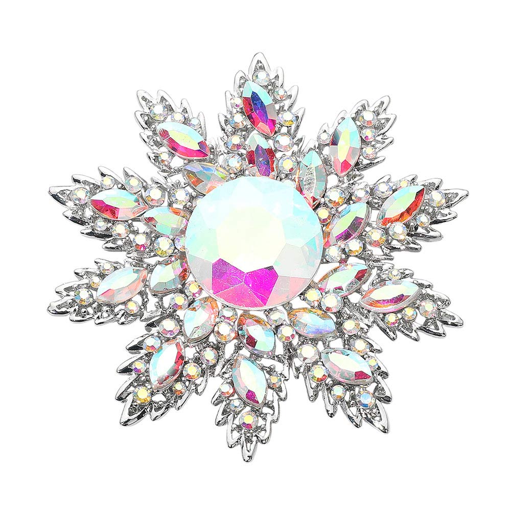 • Make a statement with this crystal floral starburst brooch, featuring a radiant layered design and a brilliant center stone that catches the light beautifully. A versatile accessory for elevating jackets, scarves, handbags, or special occasion looks.