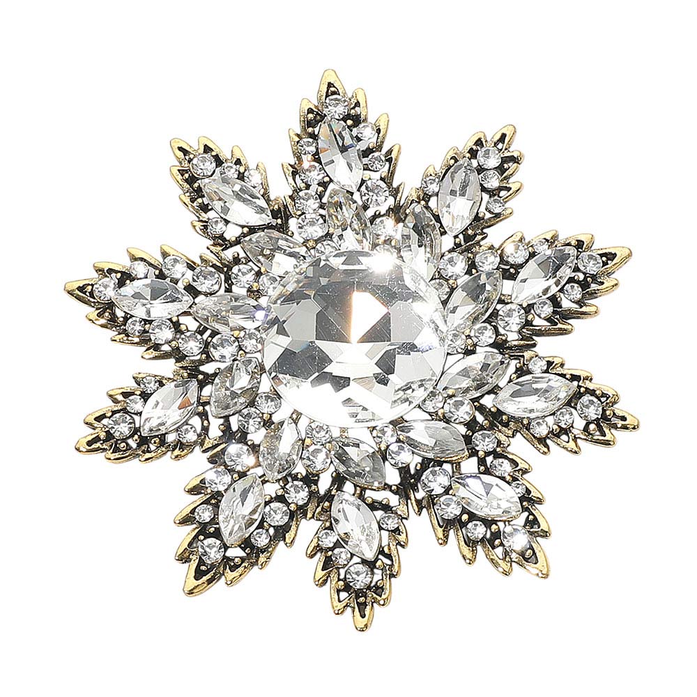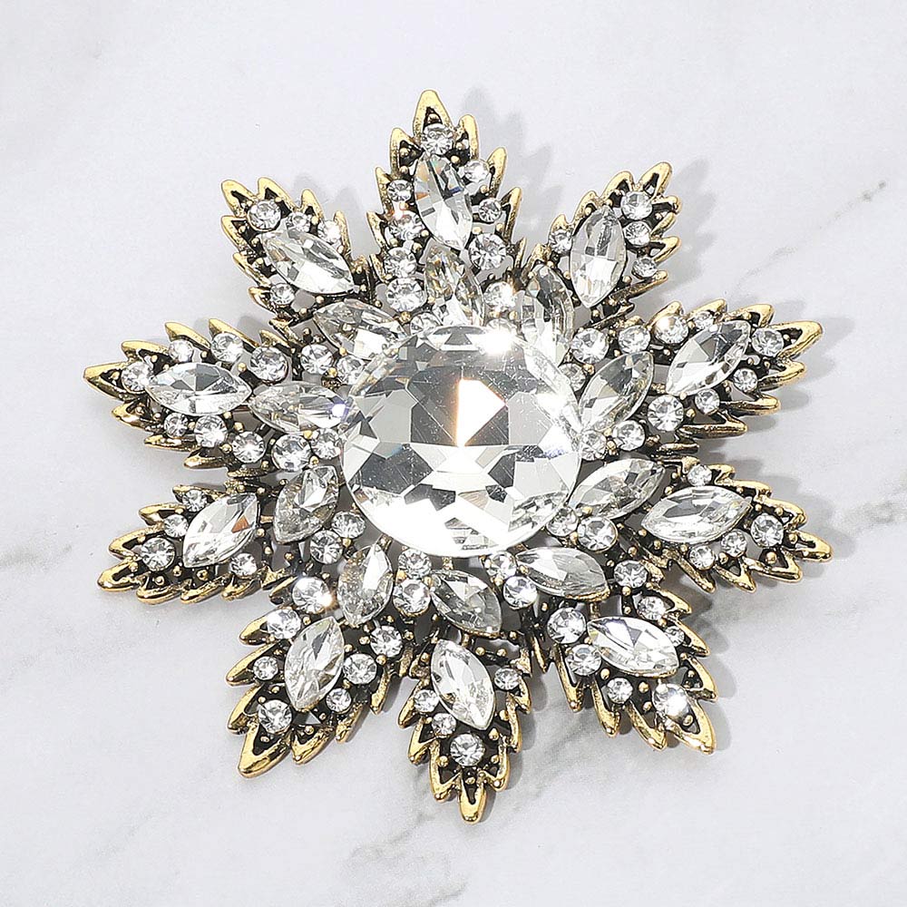 Details • Size : 3.3" X 3.5" • Pin Brooch • Make a statement with this crystal floral starburst brooch, featuring a radiant layered design and a brilliant center stone that catches the light beautifully. A versatile accessory for elevating jackets, scarves, handbags, or special occasion looks. • Lead and Nickel Compliant