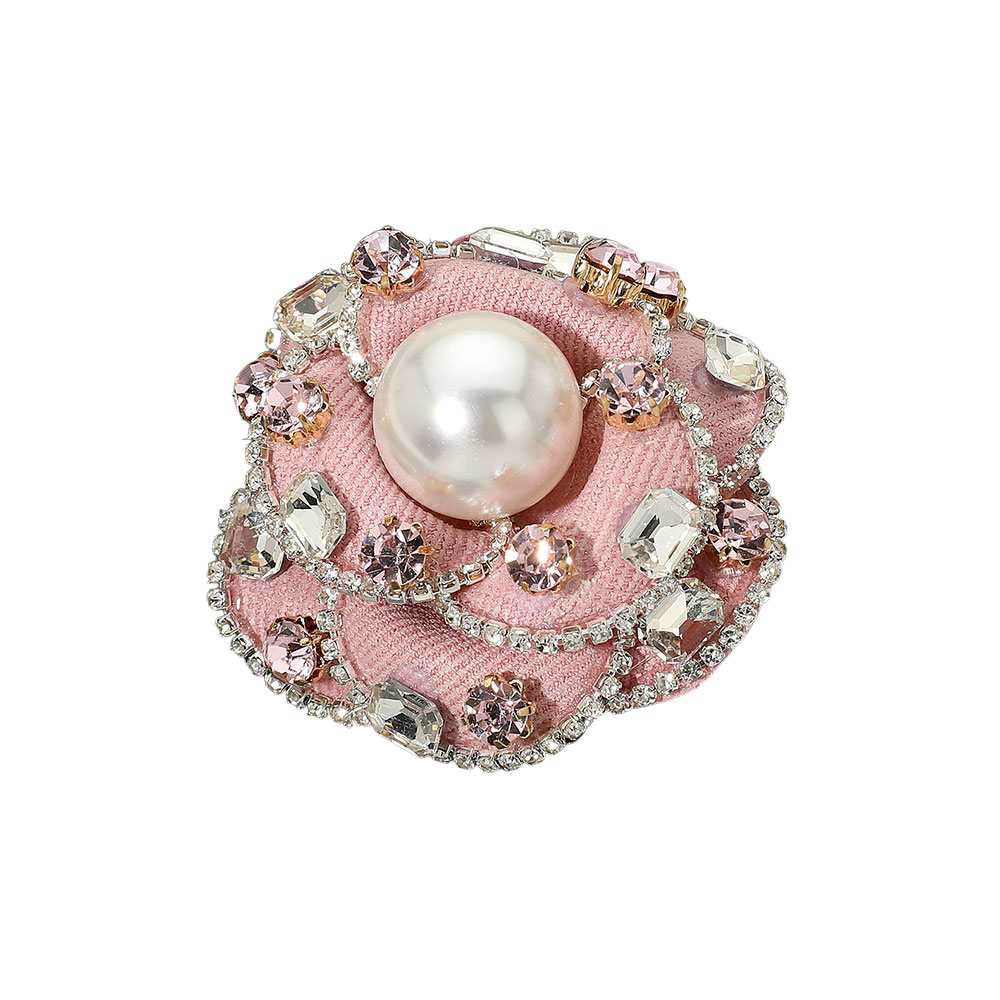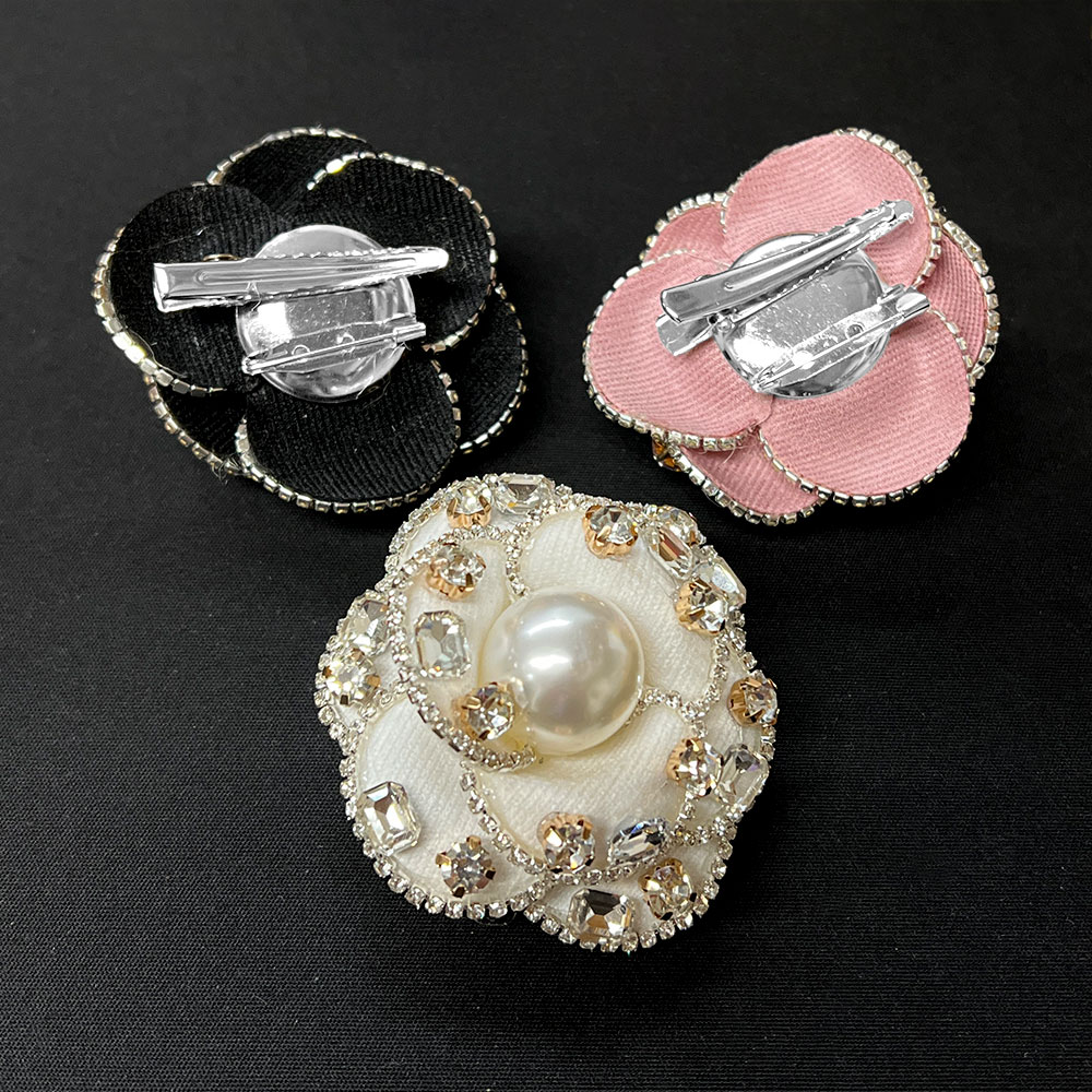 Details • Size : 2.25" X 2.25" • Dual : Brooch / Hair Pinch Clip • Luxurious flower brooch adorned with sparkling crystals and a central pearl accent, featuring a dual clip for versatile styling. Perfect for enhancing jackets, dresses, scarves, or handbags with elegance. • Lead and Nickel Compliant
