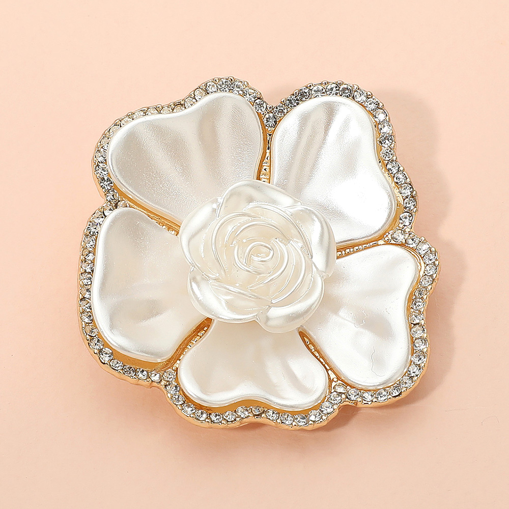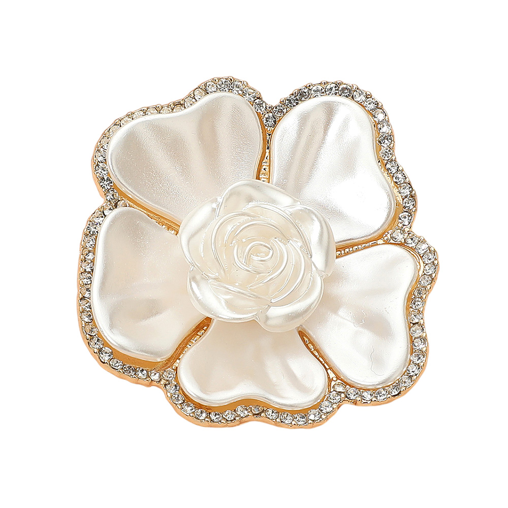 Details • Size : 2.25" X 2.25" • Pin Brooch • Elevate your look with this elegant floral brooch featuring layered petals, a carved rose centerpiece, and sparkling rhinestone accents. Designed with a secure pin clasp and versatile style, it’s the perfect accessory for formal events, casual wear, or gifting.