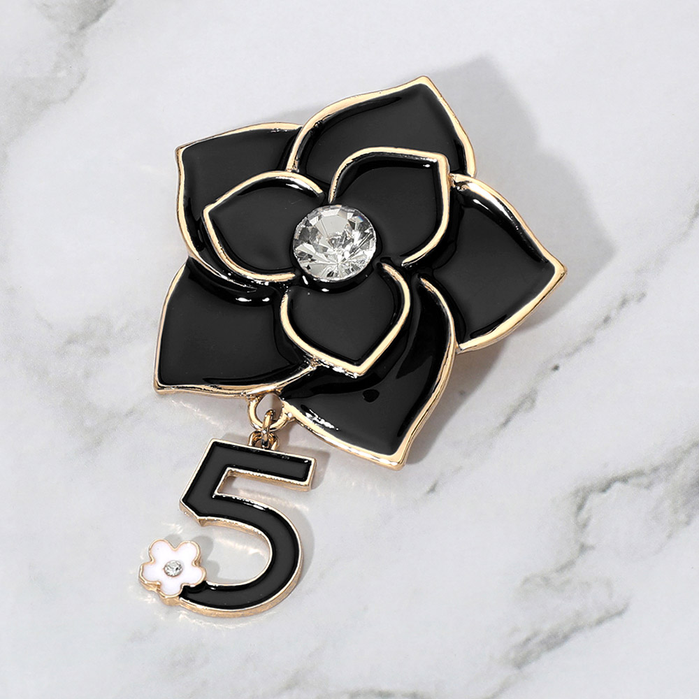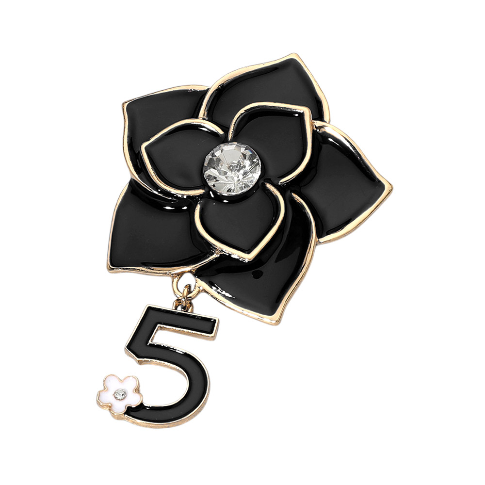 Stone Pointed Enamel Flower Number Five Dangle Pin Brooch