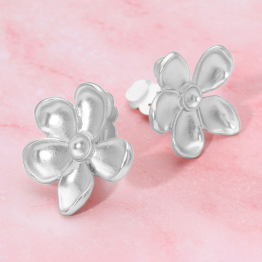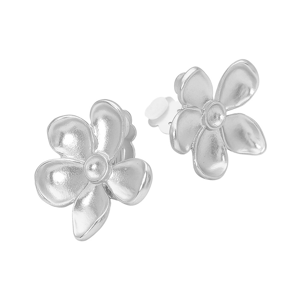 Brushed Metal Flower Clip On Earrings Brushed Metal Flower Clip On Earrings