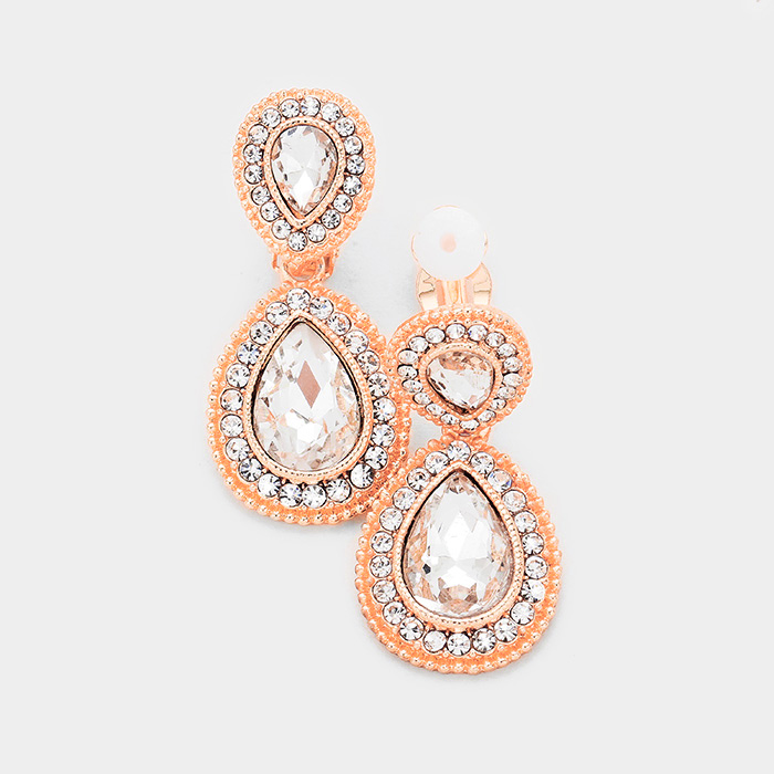Double Teardrop Link Dangle Evening Clip on Earrings