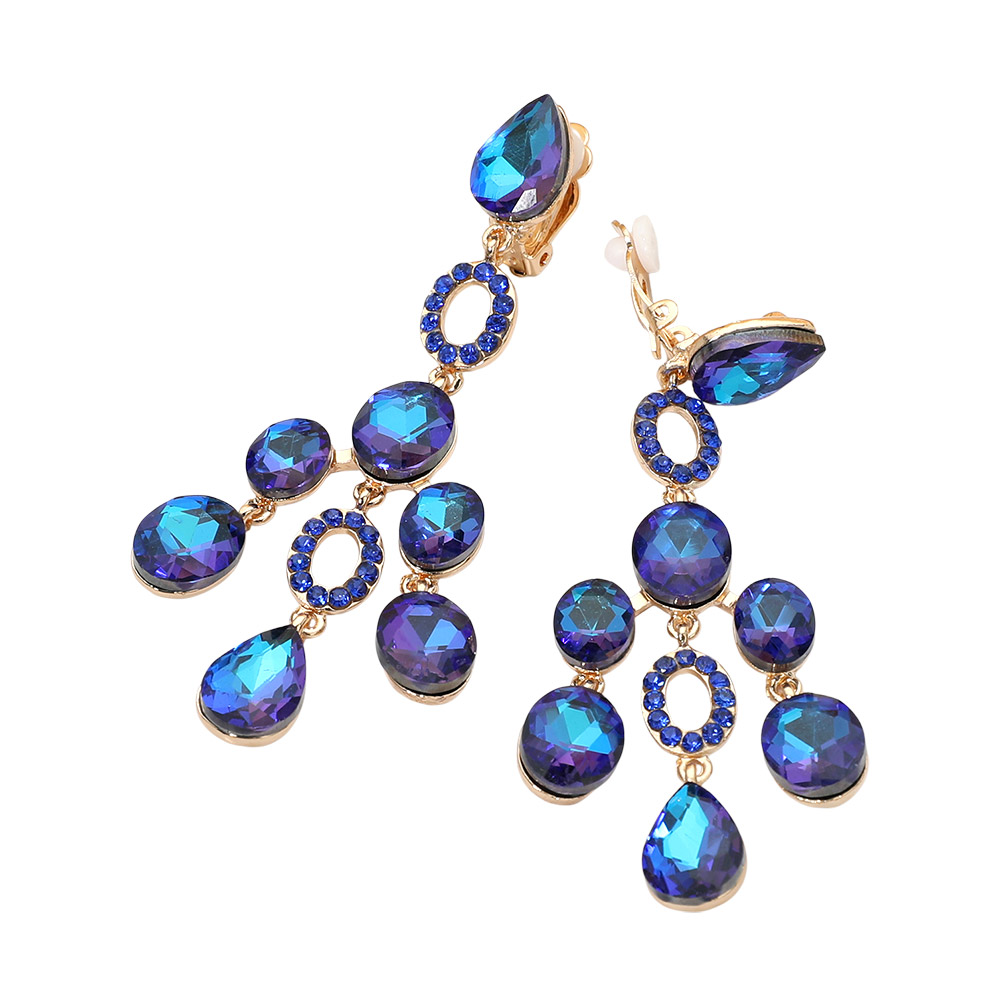 • Statement chandelier earrings featuring cascading faceted accents with a clip-on design for comfortable, secure wear. Ideal for special occasions, evening looks, and boutique collections, offering elegant movement, eye-catching sparkle, and versatile styling appeal without pierced ears.
