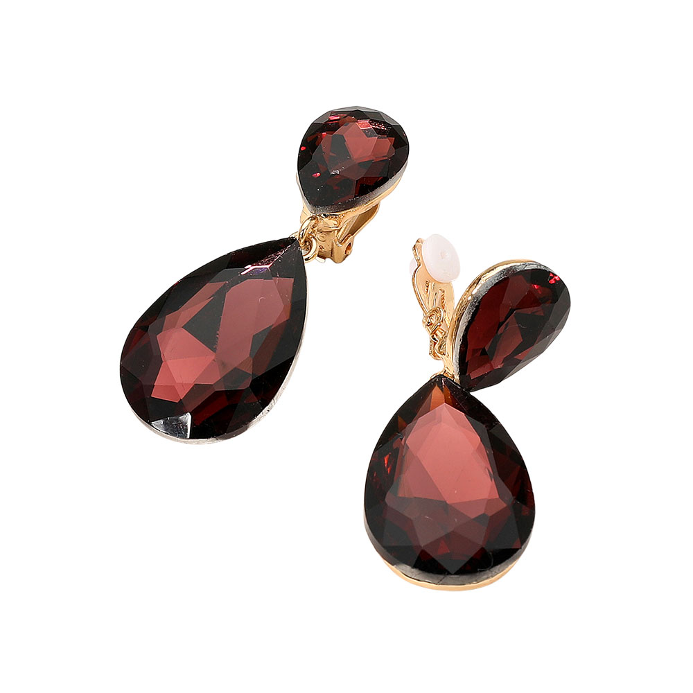Glass Crystal Double Teardrop Clip On Evening Earrings