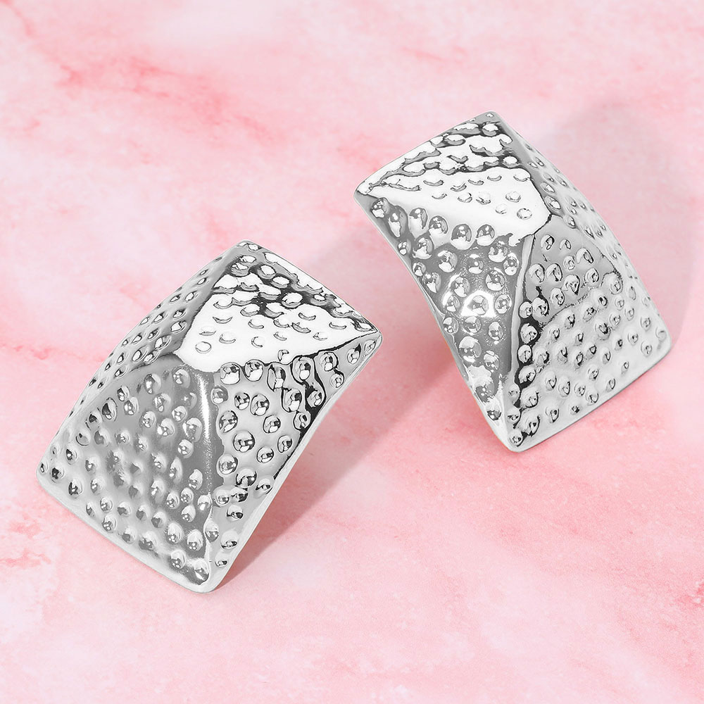 • Stylish hammered geometric clip-on earrings featuring a bold curved shape and textured detailing. Designed for comfort without pierced ears, these statement earrings elevate any outfit with their modern sculpted look.