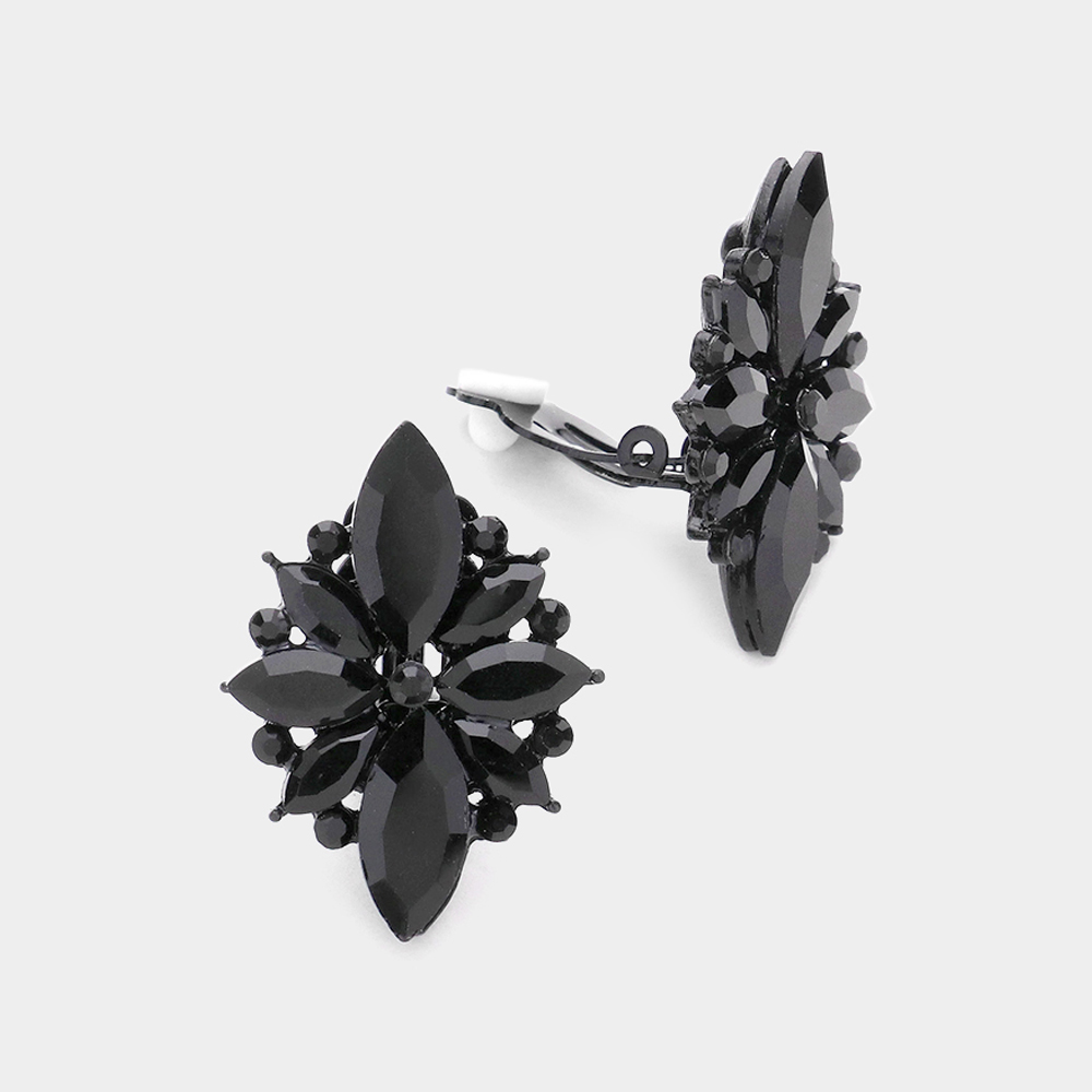Marquise Round Stone Cluster Clip on Evening Earrings
