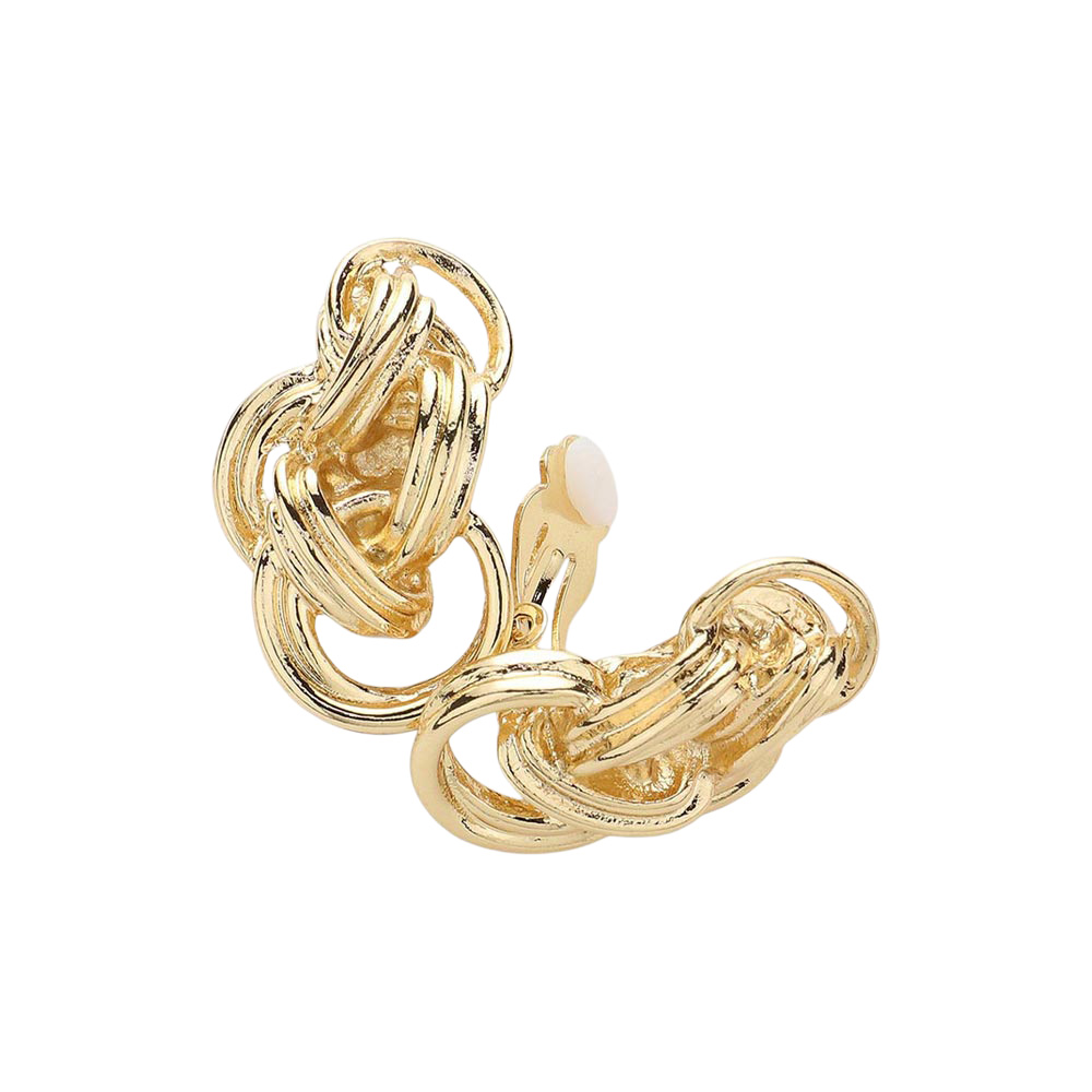 Details • Size : 0.9" X 1.3" • Clip On • These textured knot clip-on earrings blend modern artistry with timeless elegance. The intricate interwoven design adds depth and dimension, making them a chic statement piece for any occasion. Comfortable and stylish, they offer a polished finish without the need for piercings. • Lead and Nickel Compliant