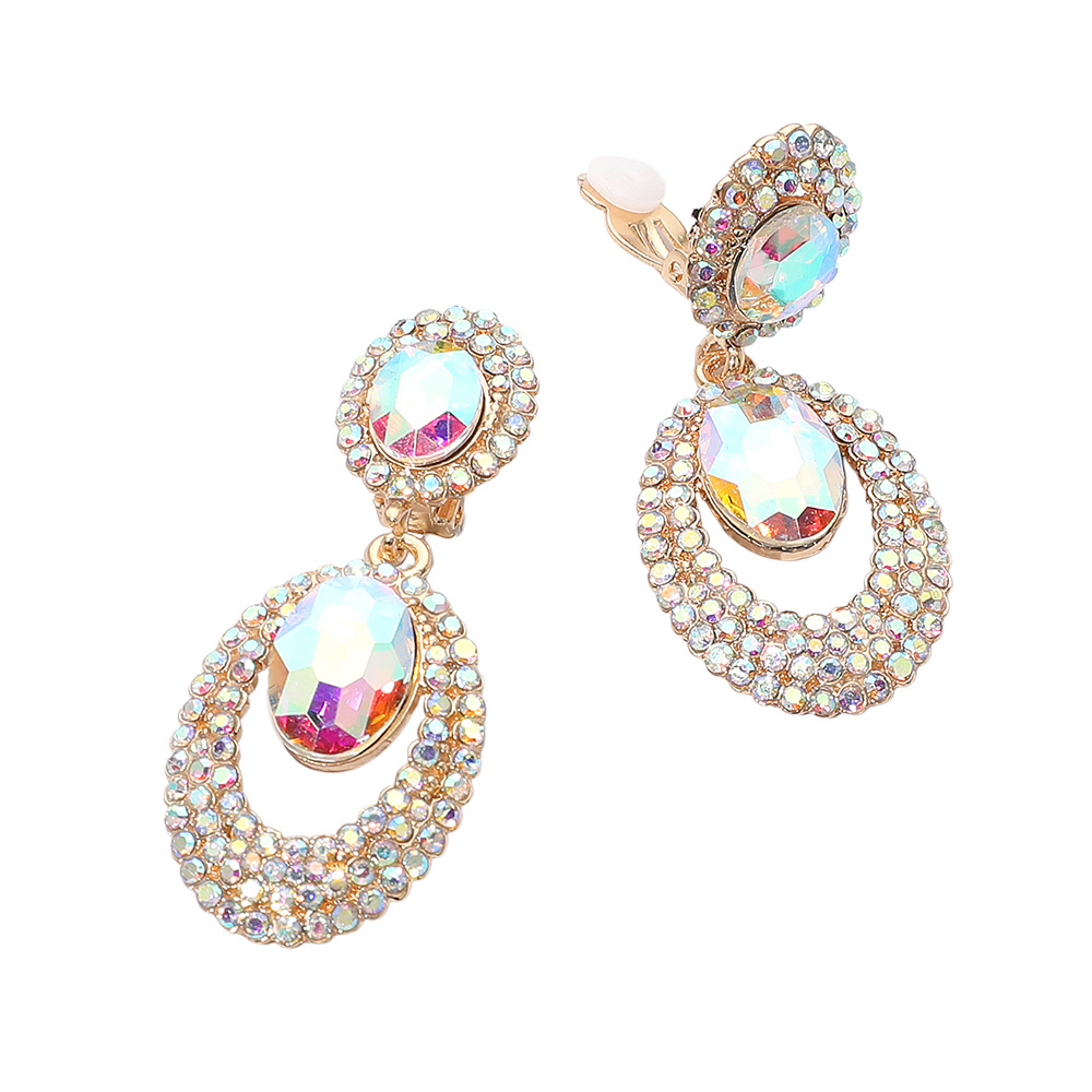 Oval Halo Drop Evening Clip On Earrings Oval Halo Drop Evening Clip On Earrings