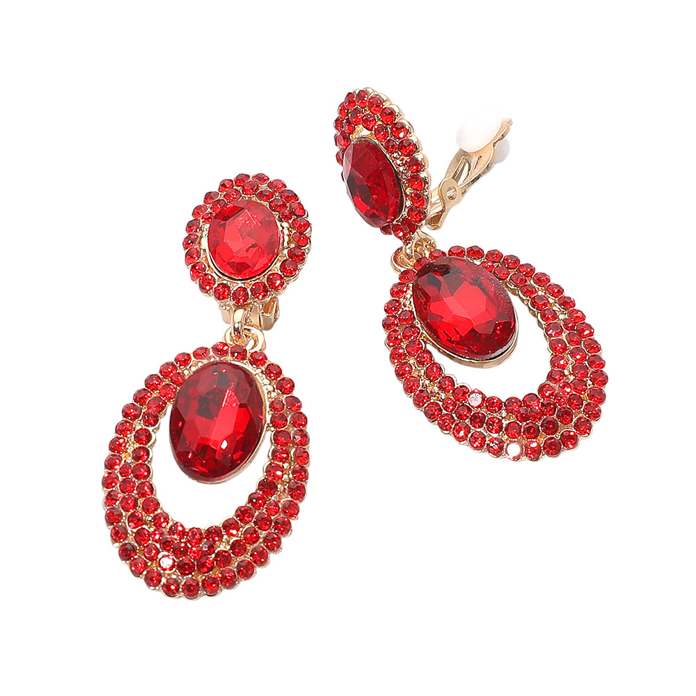 Oval Halo Drop Evening Clip On Earrings