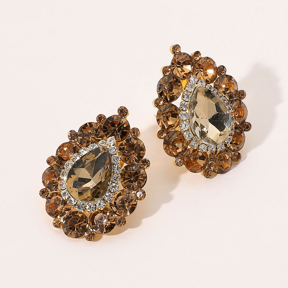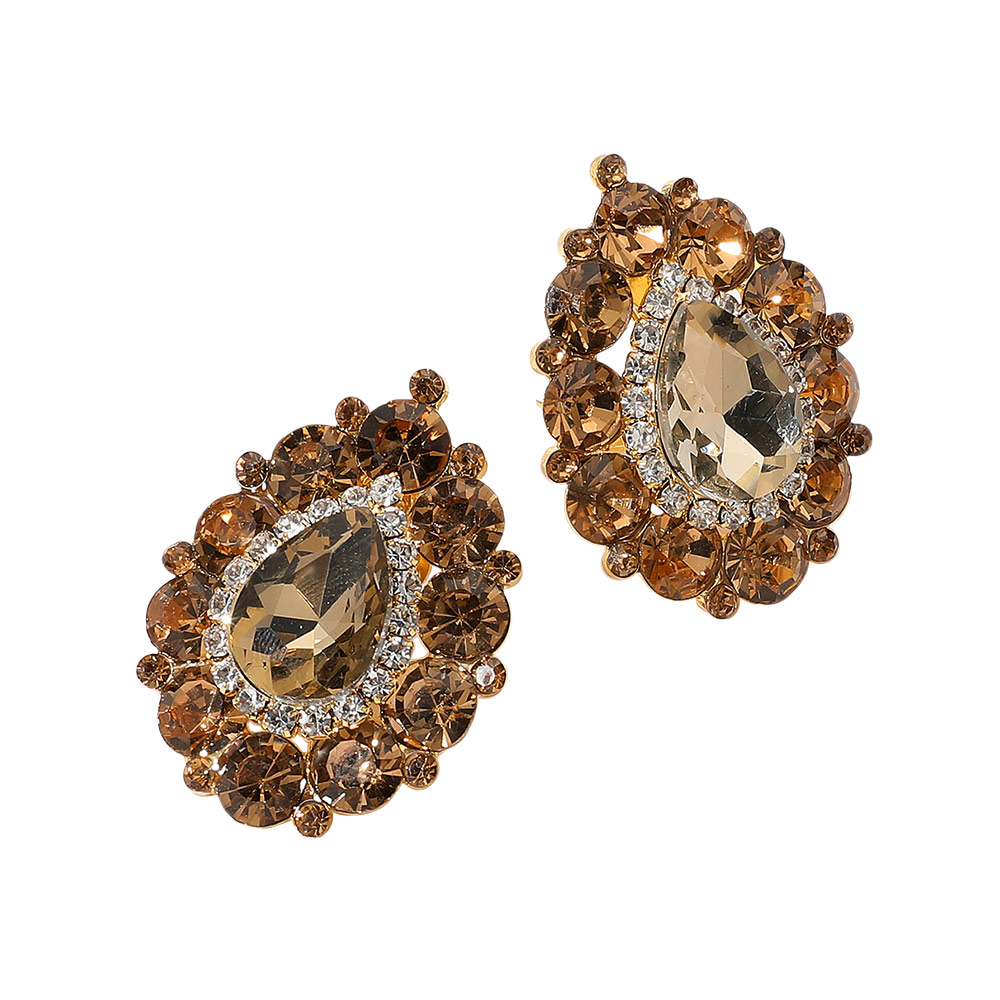 Pave Trim Crystal Teardrop Evening Clip On Earrings