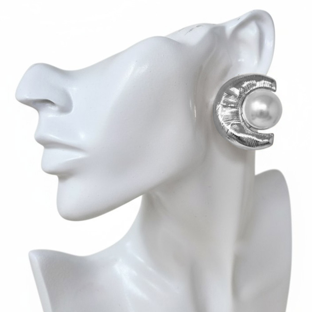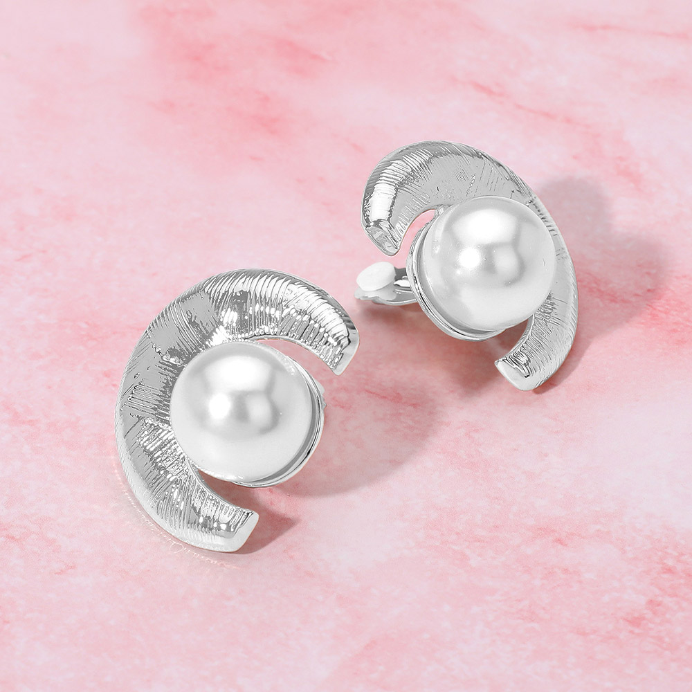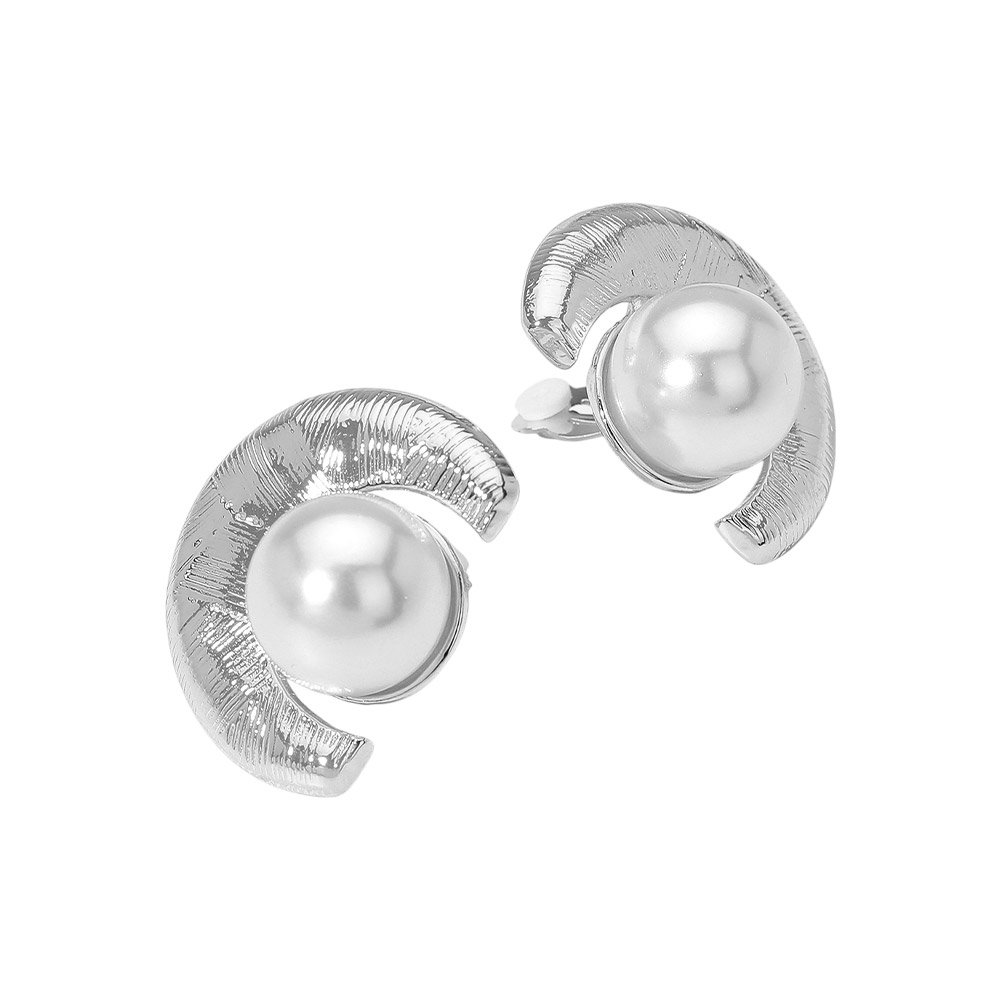 Pearl Accent Textured Curved Metal Clip On Earrings Pearl Accent Textured Curved Metal Clip On Earrings Pearl Accent Textured Curved Metal Clip On Earrings