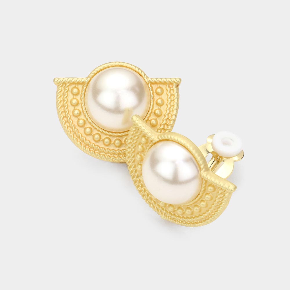 Rectangle Stone Accented Teardrop Freshwater Pearl Link Dangle Evening Earrings