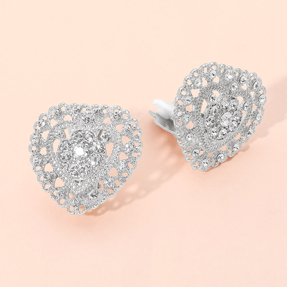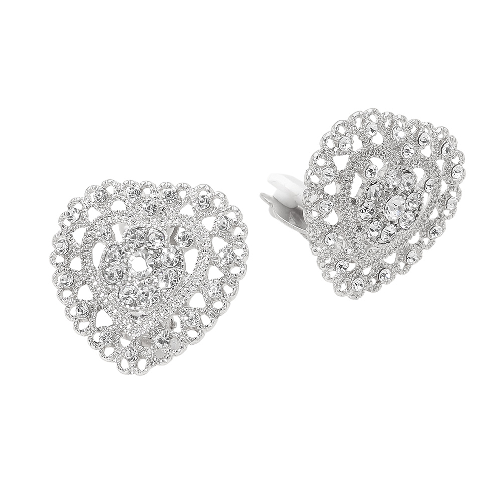• Elevate everyday and special occasion looks with these heart shape clip earrings featuring intricate openwork and sparkling accent details. Designed for comfortable wear without piercings, they offer timeless charm and eye-catching shine. A perfect boutique accessory for romantic styles, gifts, and elegant statement looks.