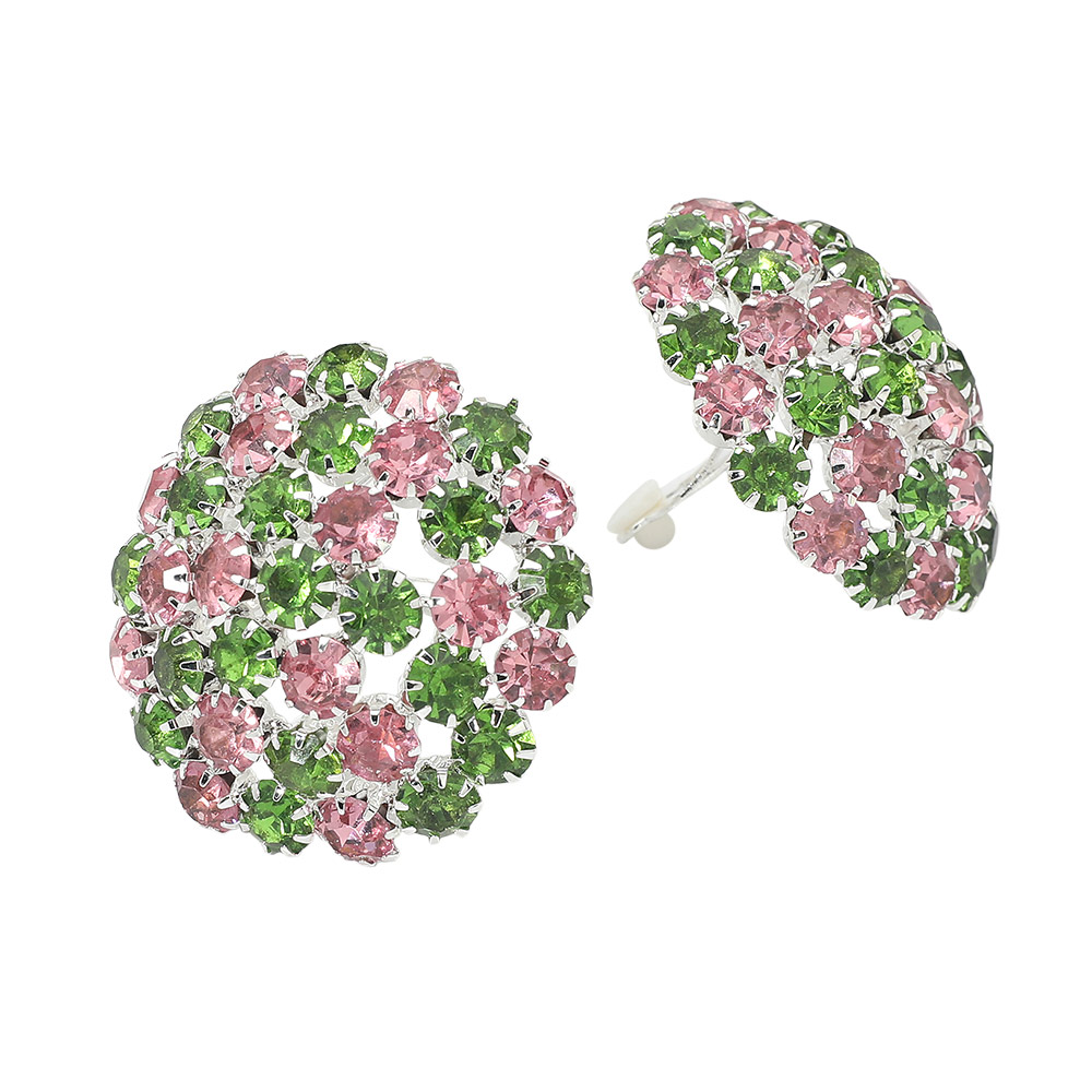 • These crystal cluster clip earrings feature a layered dome silhouette with tightly set stones for dimensional sparkle and standout style. Designed for comfortable clip-on wear, they offer statement appeal without piercings. Ideal for dressy occasions, evening looks, and boutique assortments, these earrings deliver bold visual impact with a classic, easy-to-wear profile.