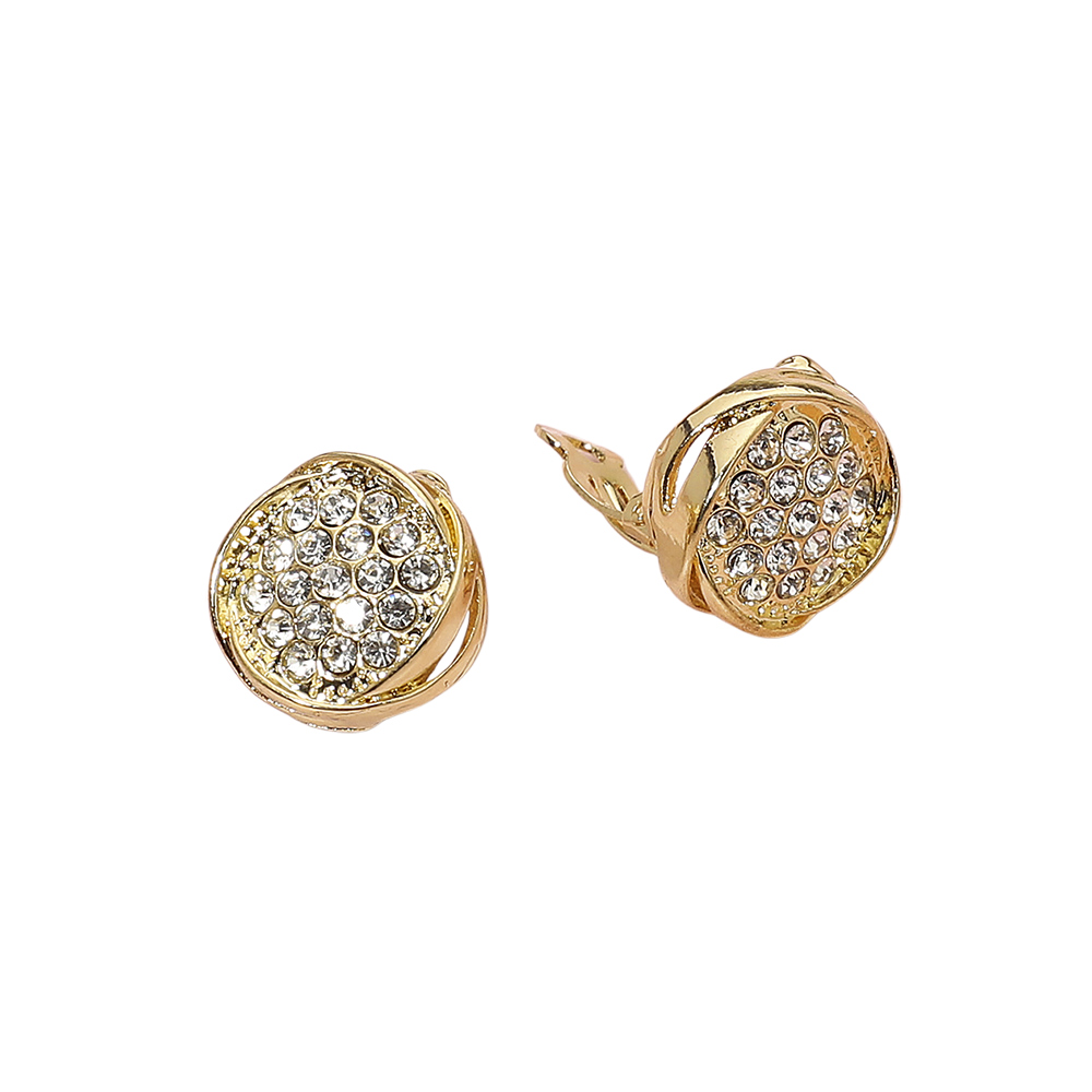 • Add timeless sparkle to any look with these round crystal clip-on earrings featuring a sophisticated swirl design. Perfect for both casual and formal occasions, they offer effortless elegance and comfort without the need for pierced ears.