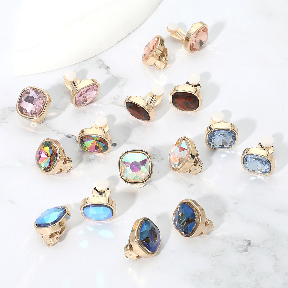 • Faceted crystal clip-on stud earrings designed for comfortable, secure wear without piercings. A refined silhouette with light-catching detail makes this pair ideal for everyday styling, special occasions, and gifting. A versatile jewelry staple for boutiques seeking elegant, easy-to-wear accessories.