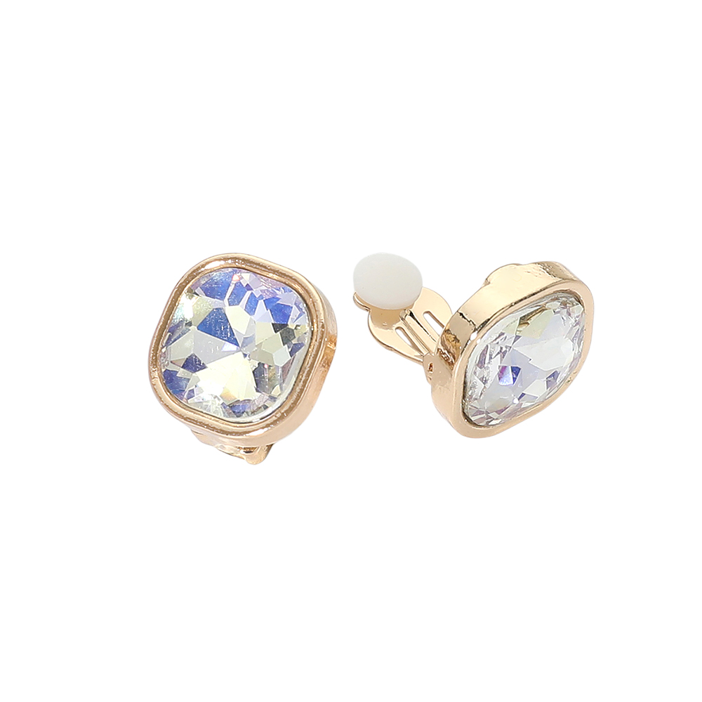 • Faceted crystal clip-on stud earrings designed for comfortable, secure wear without piercings. A refined silhouette with light-catching detail makes this pair ideal for everyday styling, special occasions, and gifting. A versatile jewelry staple for boutiques seeking elegant, easy-to-wear accessories.