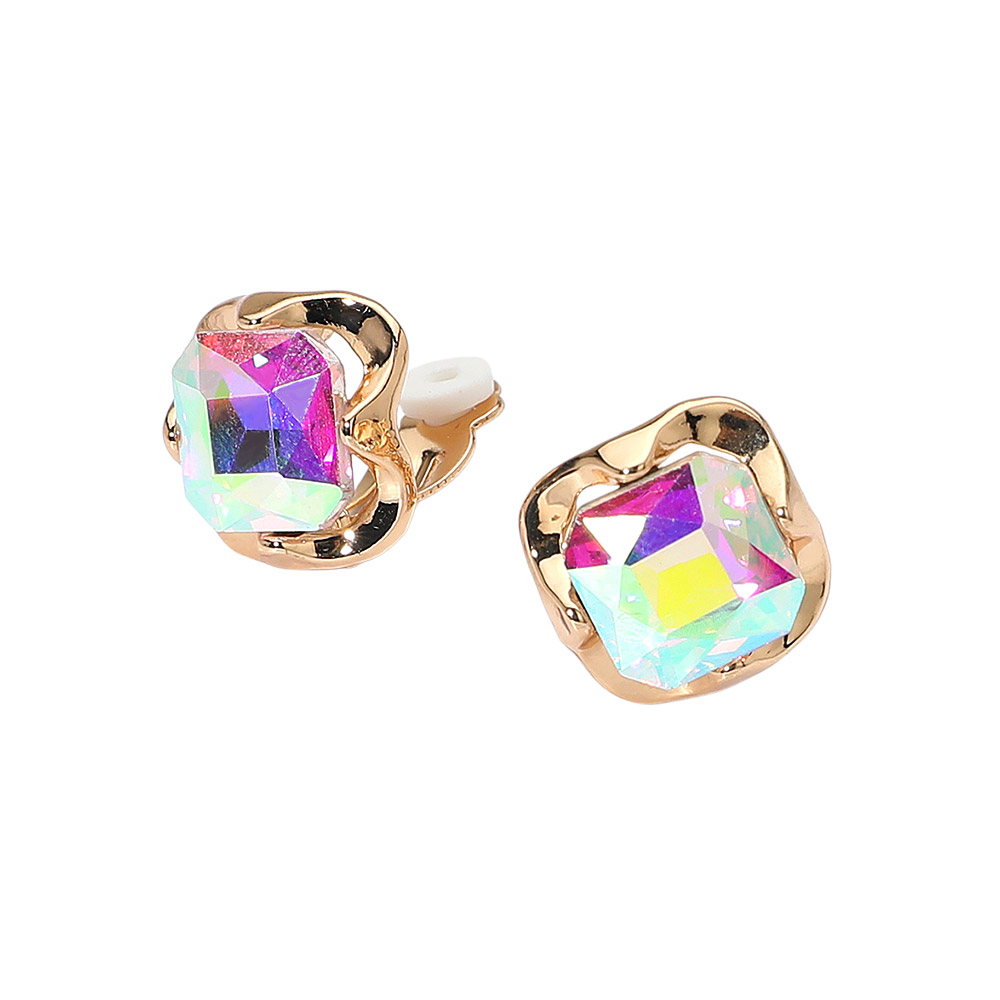 • Elegant square crystal clip-on earrings featuring a faceted gemstone design framed in a chic sculpted setting. Comfortable clip-on style adds timeless shine to both casual and dressy looks, perfect for effortless everyday elegance.