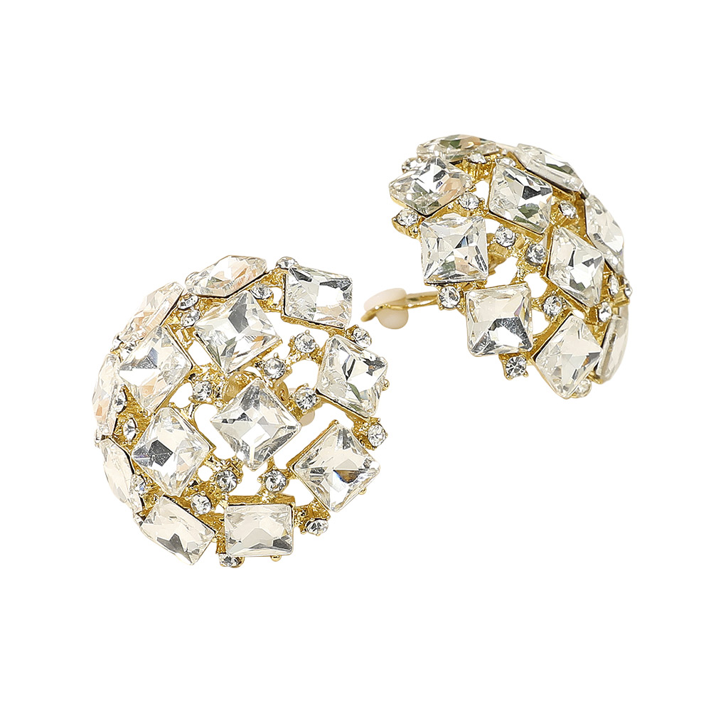 Square Stone Cluster Embellished Dome Evening Clip On Earrings