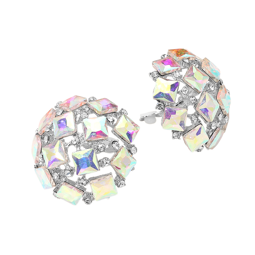 Square Stone Cluster Embellished Dome Evening Clip On Earrings Square Stone Cluster Embellished Dome Evening Clip On Earrings Square Stone Cluster Embellished Dome Evening Clip On Earrings