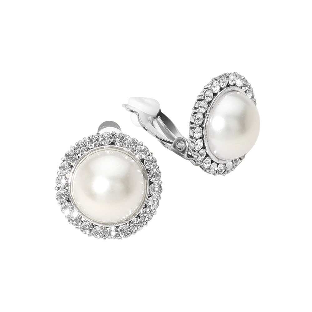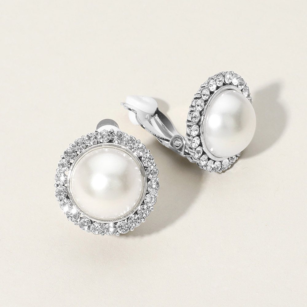 Gold Dipped Pearl Accent CZ Stone Paved Bunny Clip On Earrings