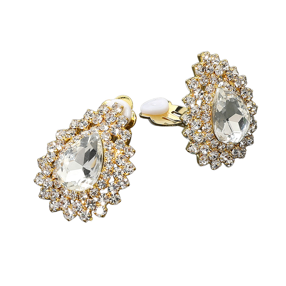 • Glamorous teardrop crystal cluster clip-on earrings designed with a sparkling layered halo for a radiant, eye-catching finish. Their elegant, non-pierced design offers comfortable wear for formal events, parties, bridal looks, or any occasion that calls for a touch of refined brilliance.
