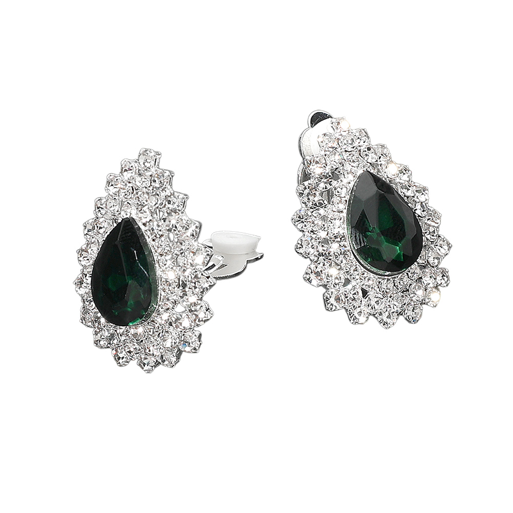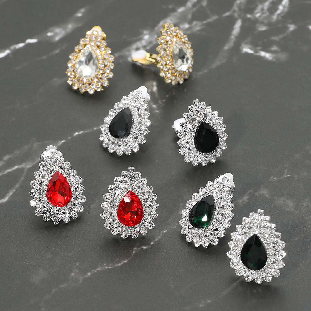 Details • Size : 0.8" X 1.2" • Clip On • Glamorous teardrop crystal cluster clip-on earrings designed with a sparkling layered halo for a radiant, eye-catching finish. Their elegant, non-pierced design offers comfortable wear for formal events, parties, bridal looks, or any occasion that calls for a touch of refined brilliance. • Lead and Nickel Compliant