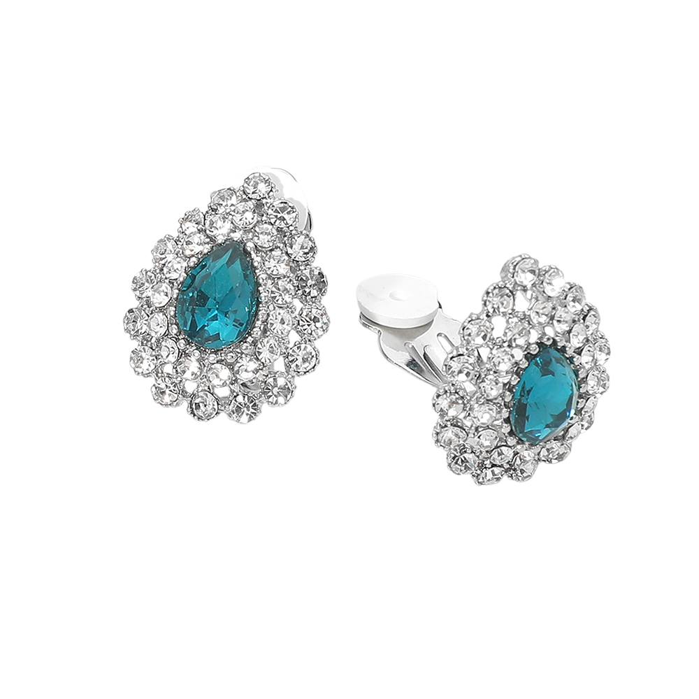 • Crystal teardrop cluster clip earrings featuring a classic halo-inspired design that adds instant elegance to any look. Designed for comfortable, secure wear without piercings, perfect for special occasions or elevated everyday styling. Ideal for boutiques seeking timeless, dressy statement earrings with refined appeal.
