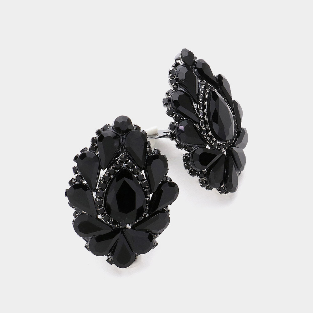 Teardrop Crystal Cluster Clip on Evening Earrings