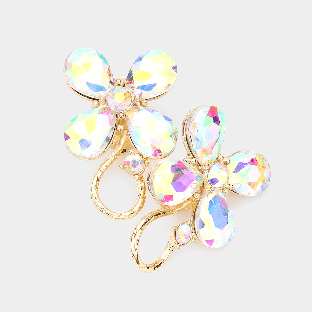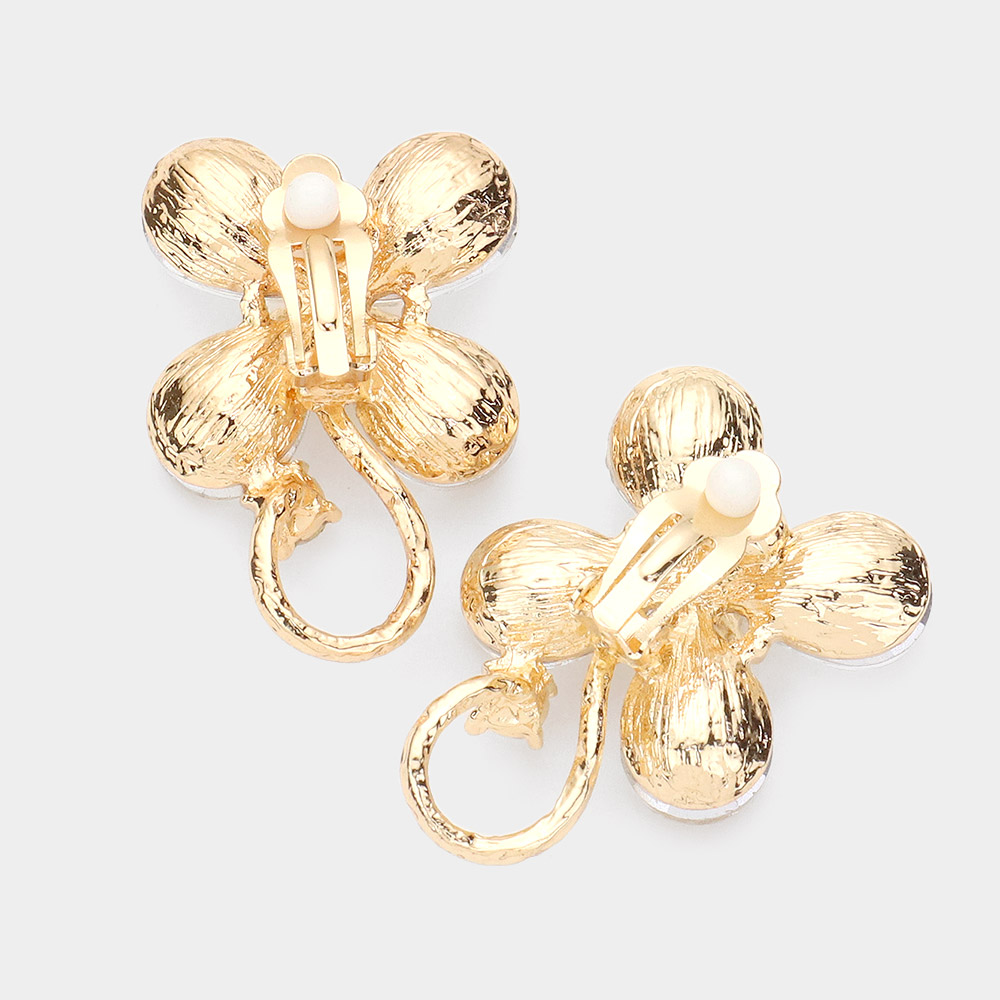 Teardrop Stone Flower Accented Clip On Evening Earring