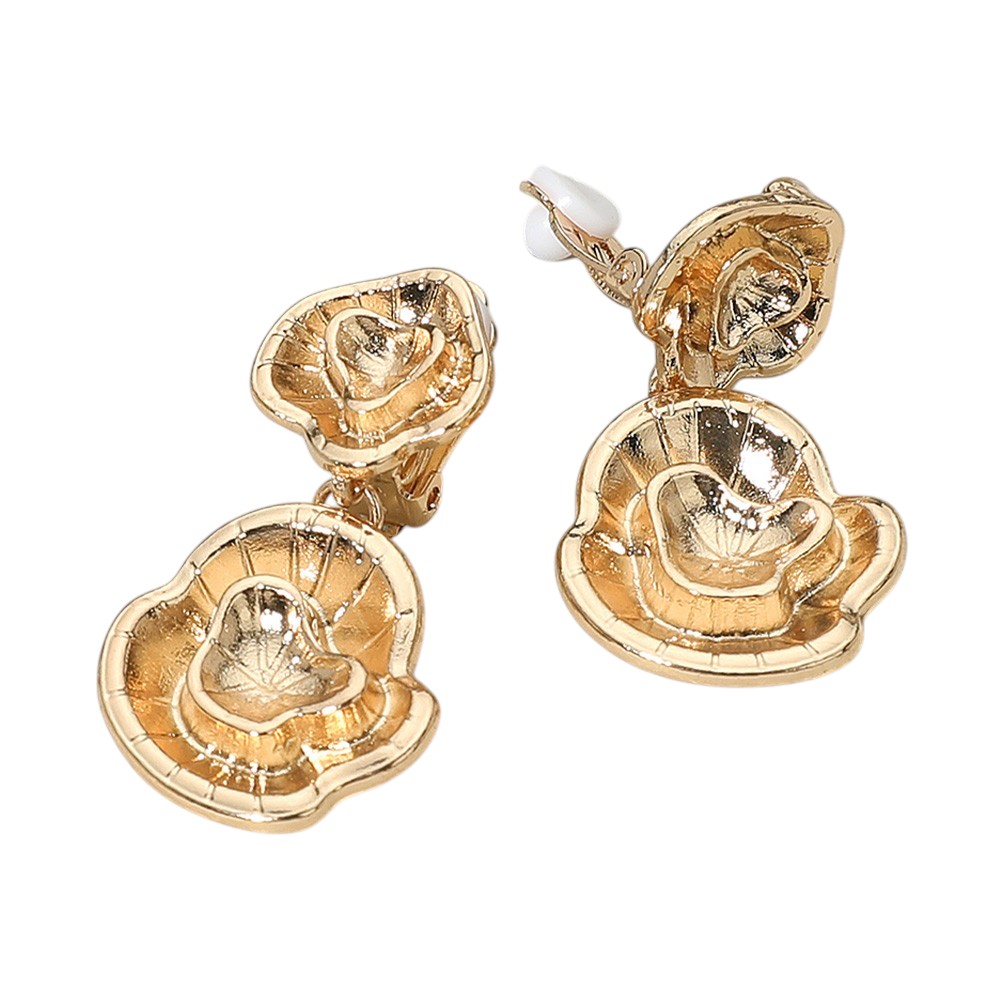 Details • Size : 1" X 1.7" • Clip On • These layered floral clip-on earrings feature a sculpted petal design with artistic detailing for a bold, statement look. Comfortable and elegant, they are perfect for elevating both casual and dressy outfits, making them a versatile accessory for any occasion. • Lead and Nickel Compliant
