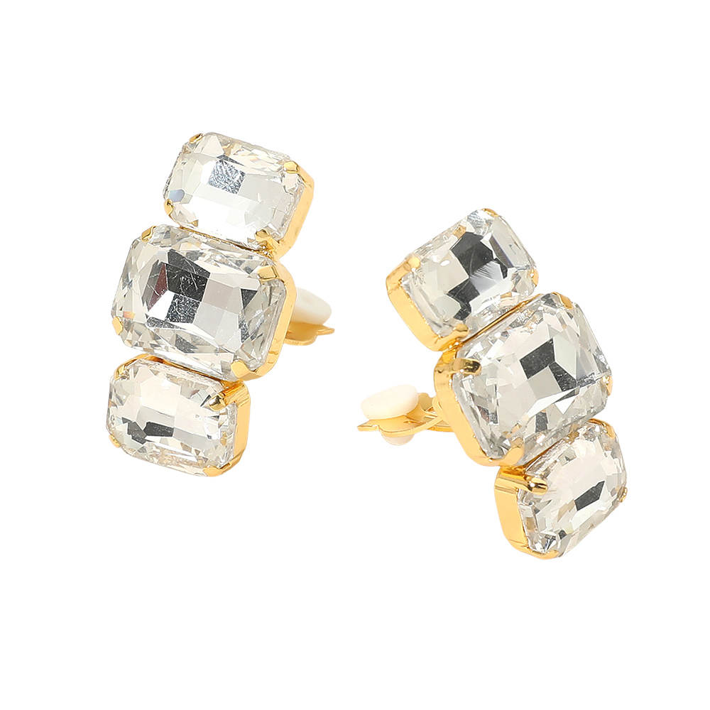 Triple Rectangular Faceted Stone Evening Clip On Earrings Triple Rectangular Faceted Stone Evening Clip On Earrings