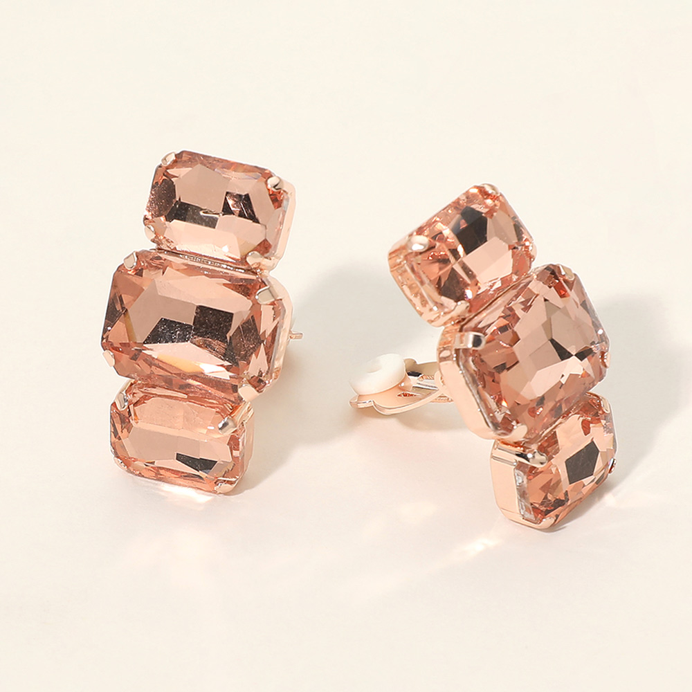 Details • Size : 0.75" X 1.25" • Clip On • Statement clip earrings designed with stacked geometric faceted stones that reflect light beautifully for a bold, eye-catching look. Perfect for dressing up everyday outfits or adding dramatic shine to evening wear, these clip earrings offer comfortable wear with a glamorous, modern silhouette that appeals to customers seeking standout accessories with elegant sparkle. • Lead and Nickel Compliant
